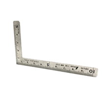 直角に折れ曲がった金属製物差し。