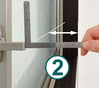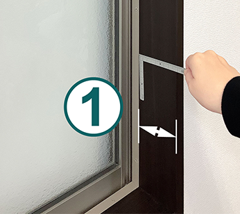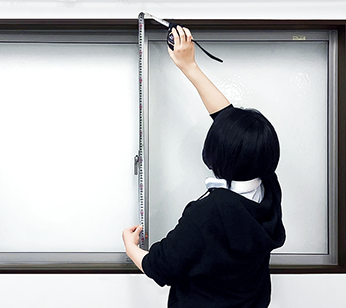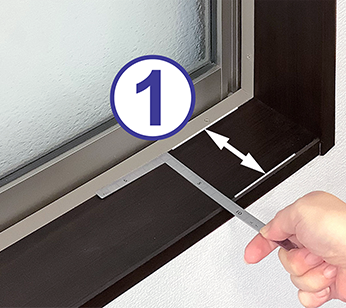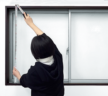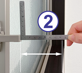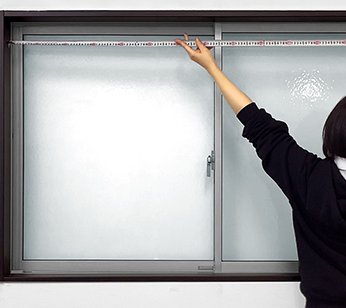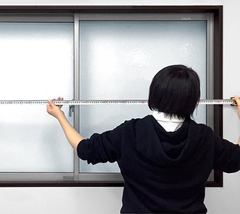 窓枠の内側までの寸法を測定します。